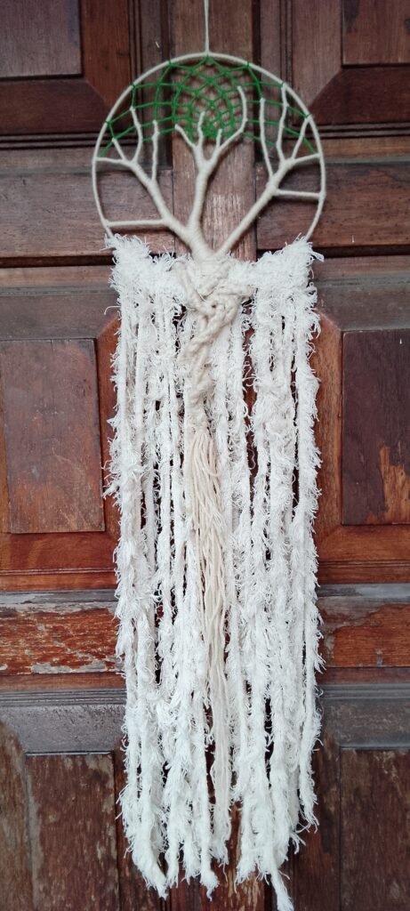 Arbol tejido a mano en tecnica de Atrapa sueños, tronco y raices en Macrame.