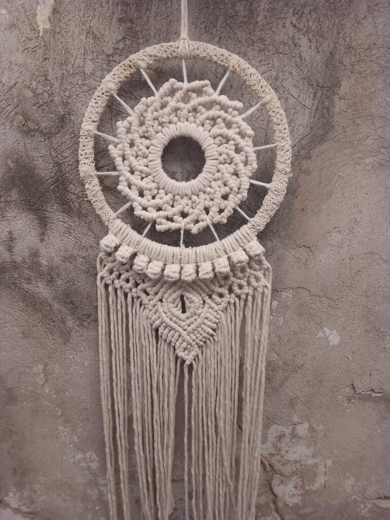 Mandala tejida a mano en Macrame con hilos de algodon.